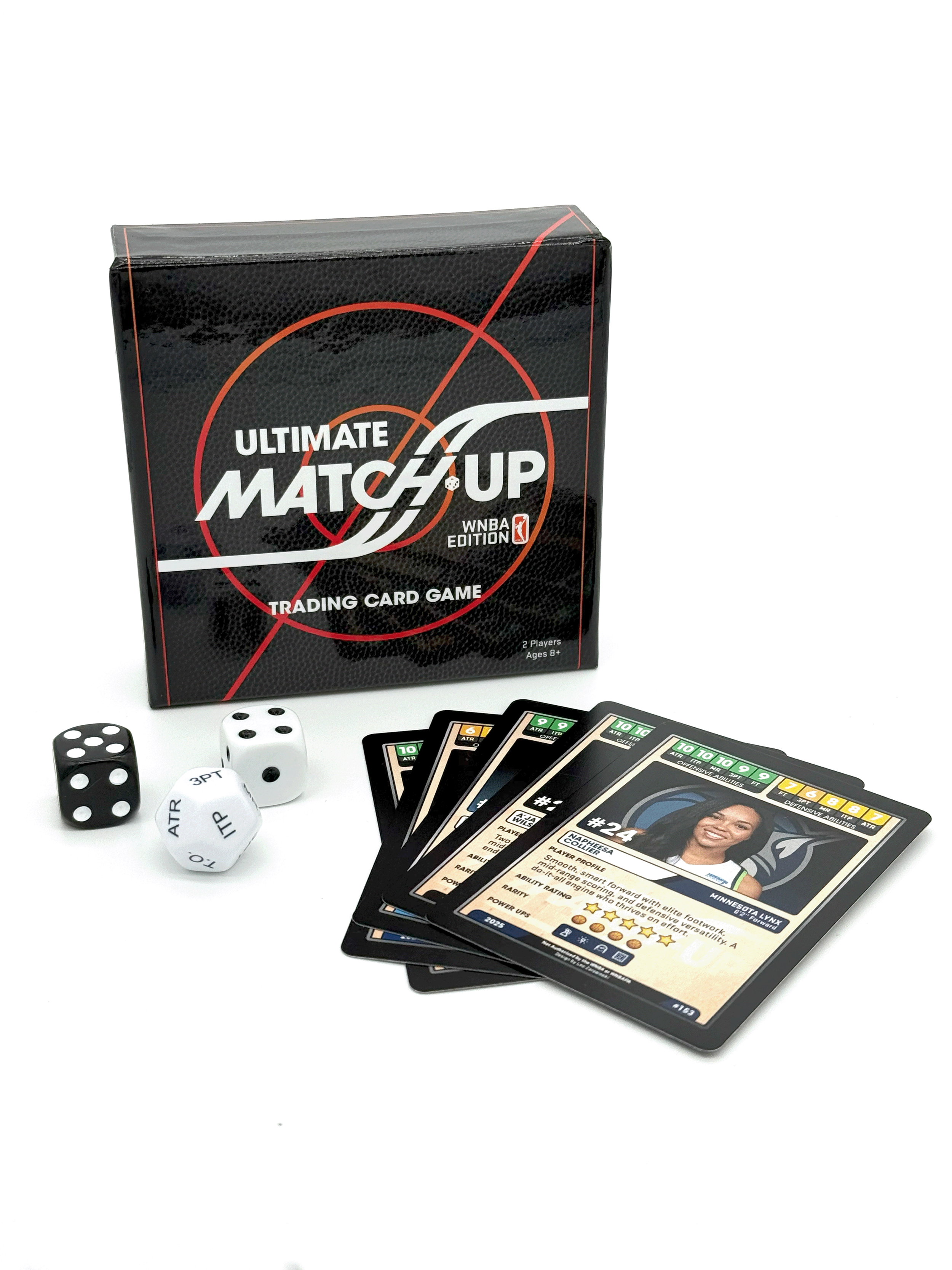 Ultimate Matchup is a new trading card game that pits your favorite WNBA players against each other in exciting offense vs defense, 1v1 battles. Easy to learn gameplay will have you started in minutes, while Game Impact Cards, Player Power Ups, and a variety of Game Modes create endless ways to play and win!